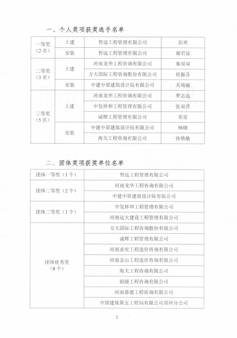 关于公布河南省第五届工程造价技能大赛郑州赛区选拔赛结果的通知