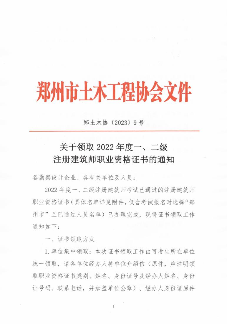 关于领取2022年度一、二级注册建筑师职业资格证书的通知
